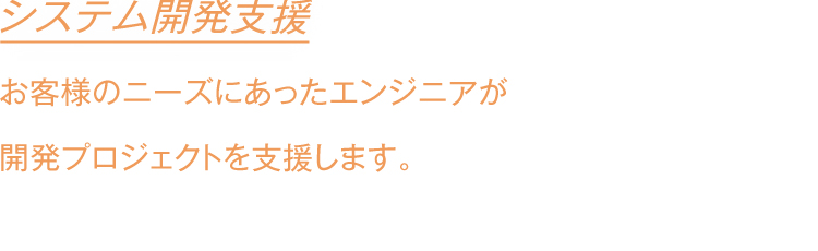 SIer、ITベンダー、エンドユーザー企業のお客様のニーズにお応えして、必要なスキルを持つエンジニアが開発支援サービスを実施します。おかげさまで、会社設立以来、数多くのお客様より、継続的にお引き合いをいただいています。